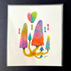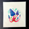 Original Watercolor Mushroom Pink & Blue