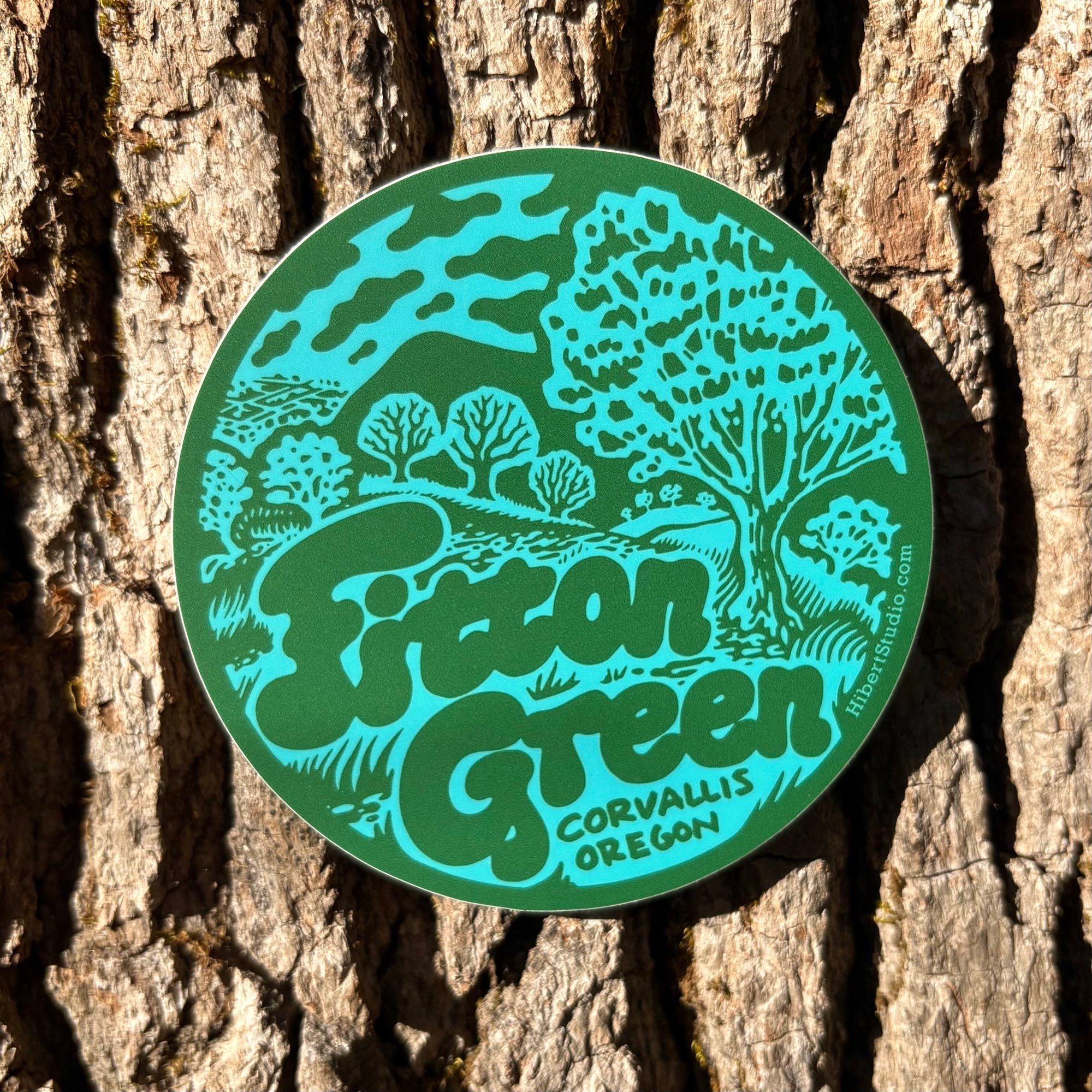 Show your Fitton Green park pride with this jumbo sticker! It captures all of our favorite things about Fitton Green: the beautiful Oak Savannas, grassy prairies, Marys Peak and the views looking down into Philomath.